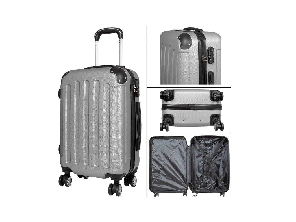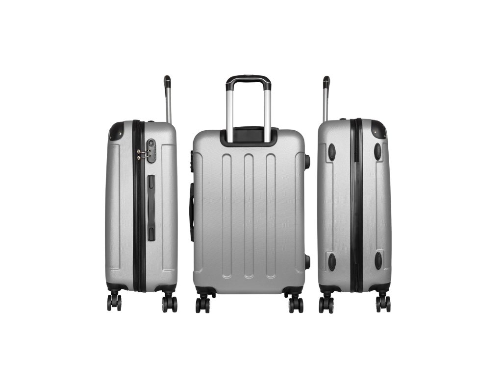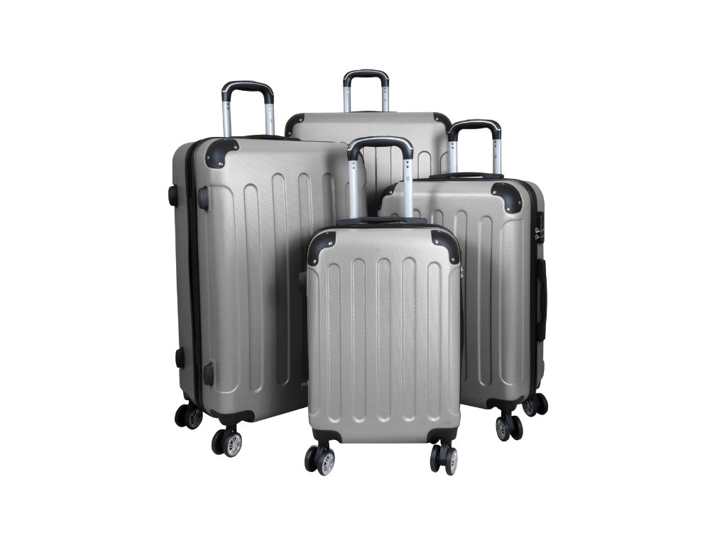 Set of travel suitcases in silver color 4 pcs